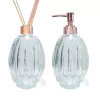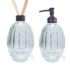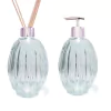 Apresentamos um conjunto sofisticado de frascos de vidro em um design em gomos, perfeito para acomodar seus sabonetes líquidos e difusor de aroma. Com um acabamento cristalino que exala moderno, esses frascos não são apenas funcionais, mas também acrescentam um toque de luxo à sua Decoração. A combinação perfeita de estilo e utilidade para elevar sua experiência de cuidados pessoais e ambientação de espaços.