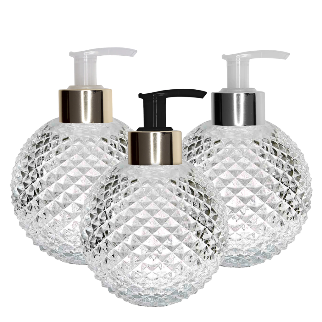 O Frasco Vidro Bola Bico de Jaca Cristal 330ml com Válvula Pump combina elegância e funcionalidade, sendo perfeito para diversos usos no artesanato e na cosmética. Seu design com textura clássica de bico de jaca proporciona um toque sofisticado às suas criações. É a escolha ideal para produtos que demandam praticidade e estilo.