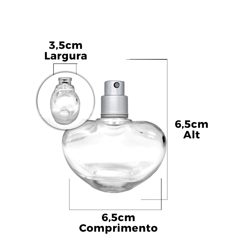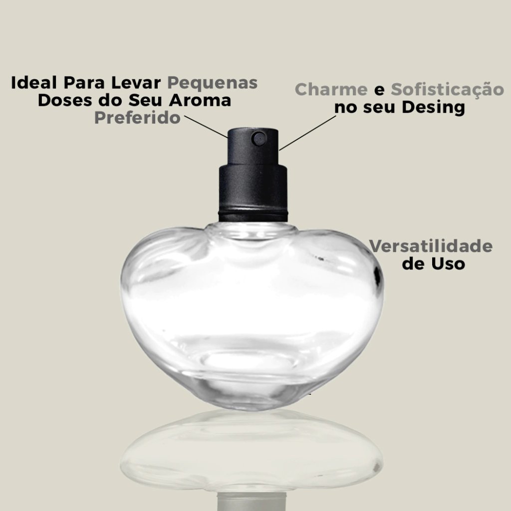 Frasco de Vidro Mini Coração Recrave 20ml com Válvula Spray Luxo – Encante com Delicadeza e Versatilidade