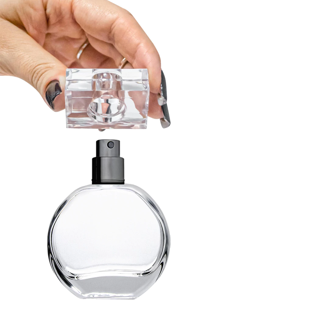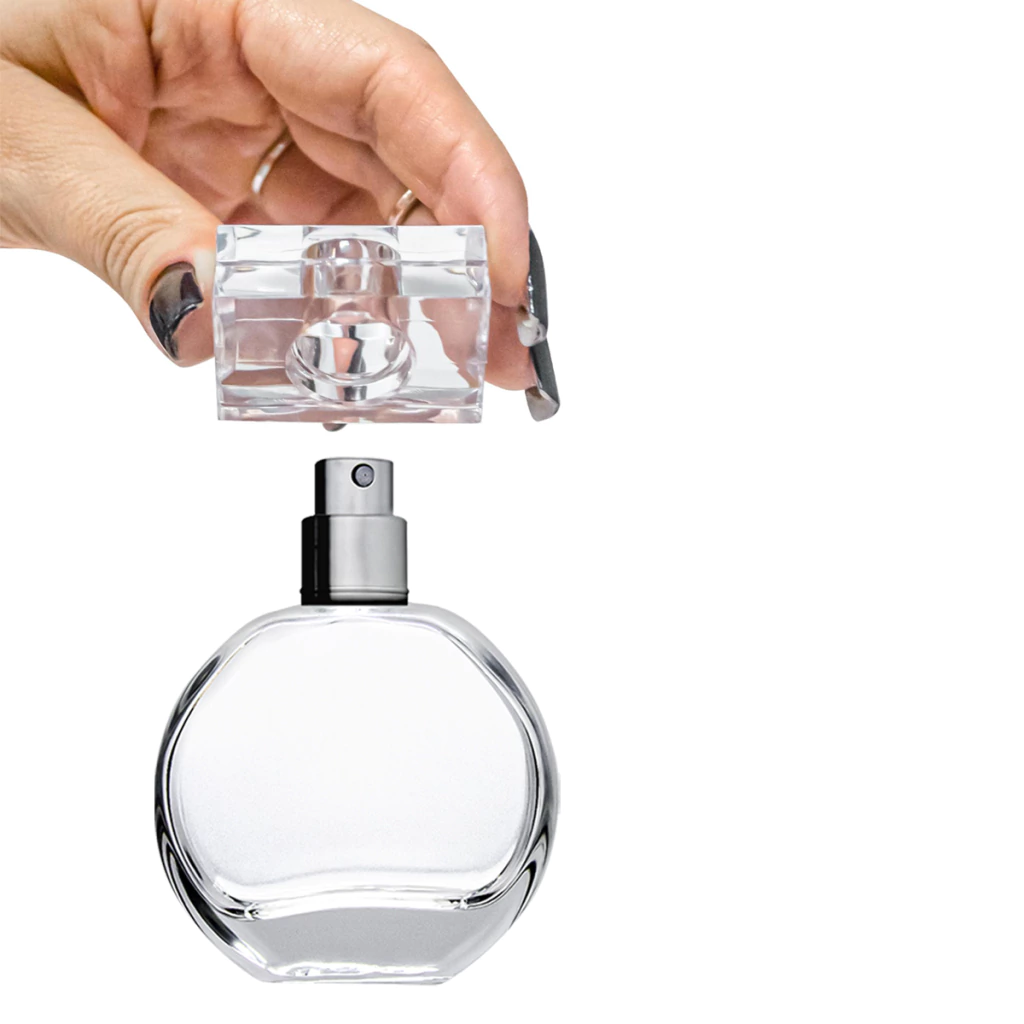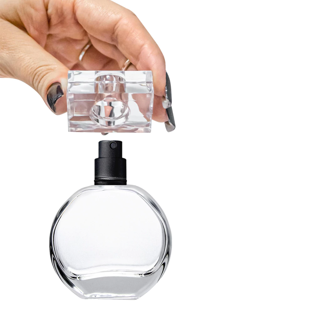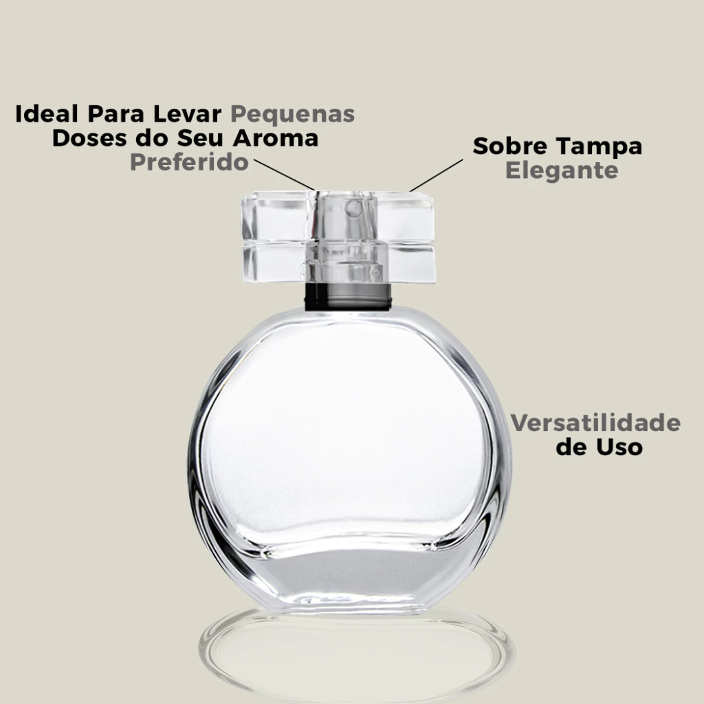 Frasco de Vidro Luna 25ml com Válvula Easy Lock 15mm + Sobre Tampa Cristal – Compacto, Elegante e Funcional